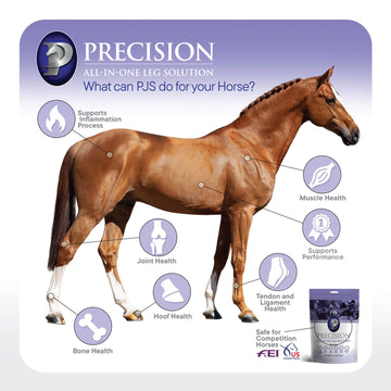 Precision “PJS” All-In-One Leg Solution is an innovative formula developed specifically for the sport horse. It is the first of it’s kind that targets the joints, tendons, ligaments, cartilage, hooves and bone while supporting the inflammation cycle.